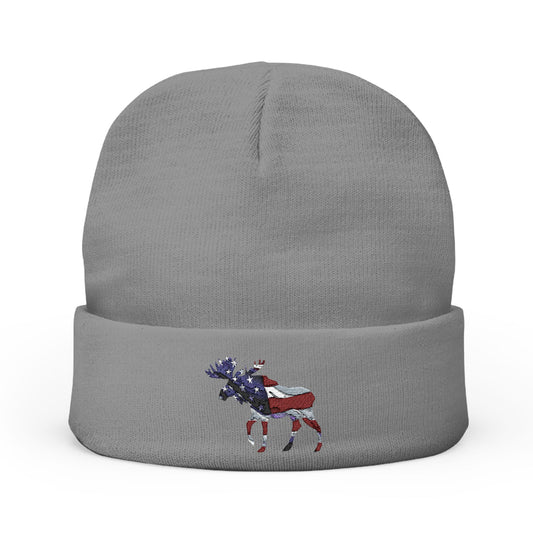 Beanie Hat Patriotic Moose Embroidered Knit Beanie